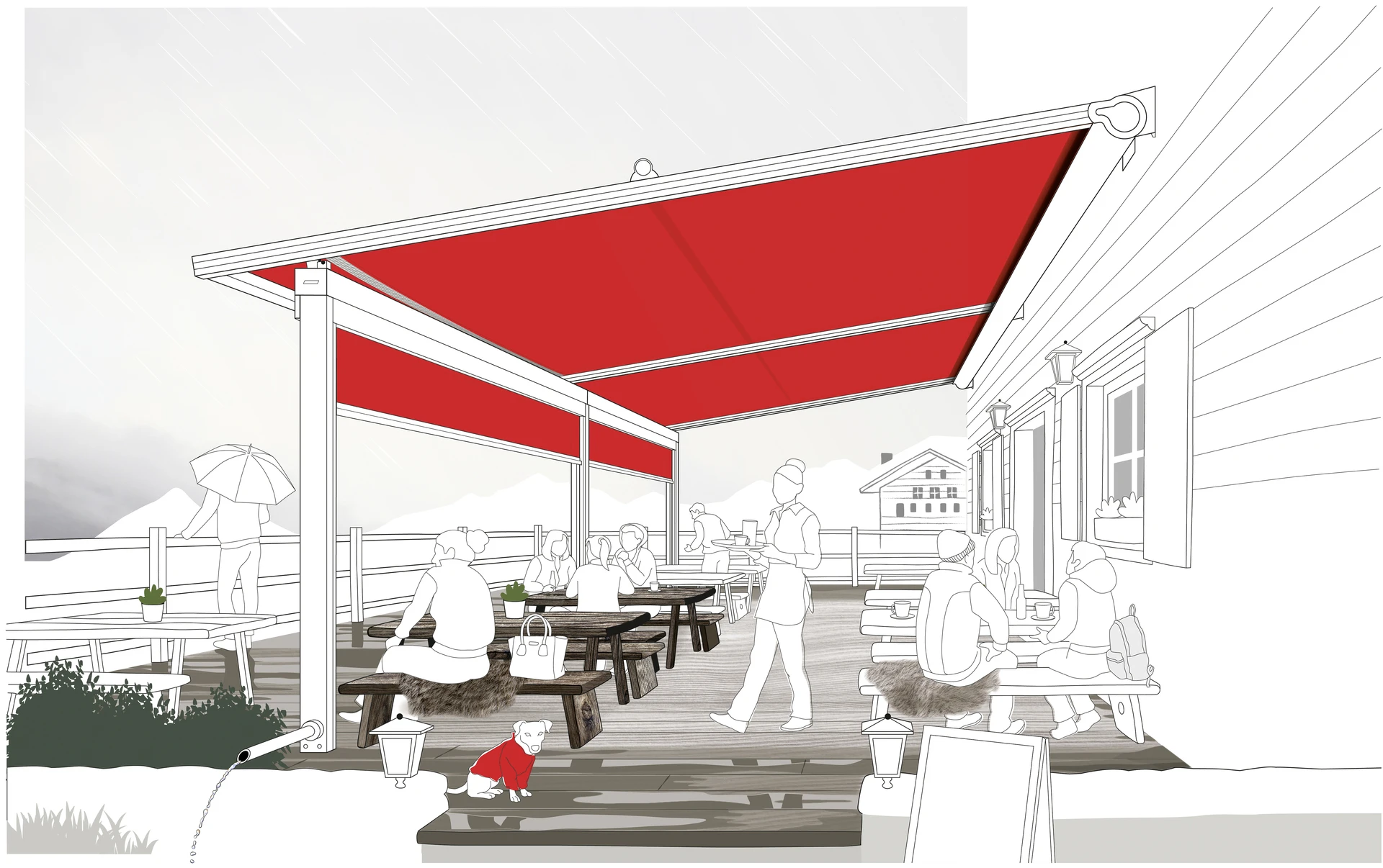 Filigraner Sonnen- und Regenschutz