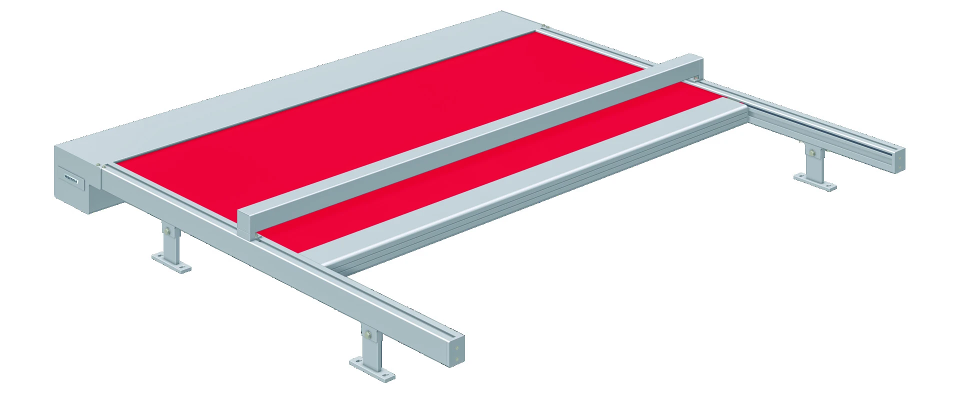 Illustration einer modernen Markise mit rotem Stoff und silbernem Rahmen